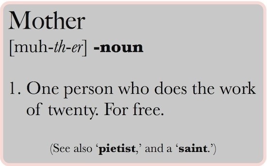 “A mother is a person who seeing there are only four pieces of pie for five people, promptly announces she never did care for pie.” -Tenneva Jordan